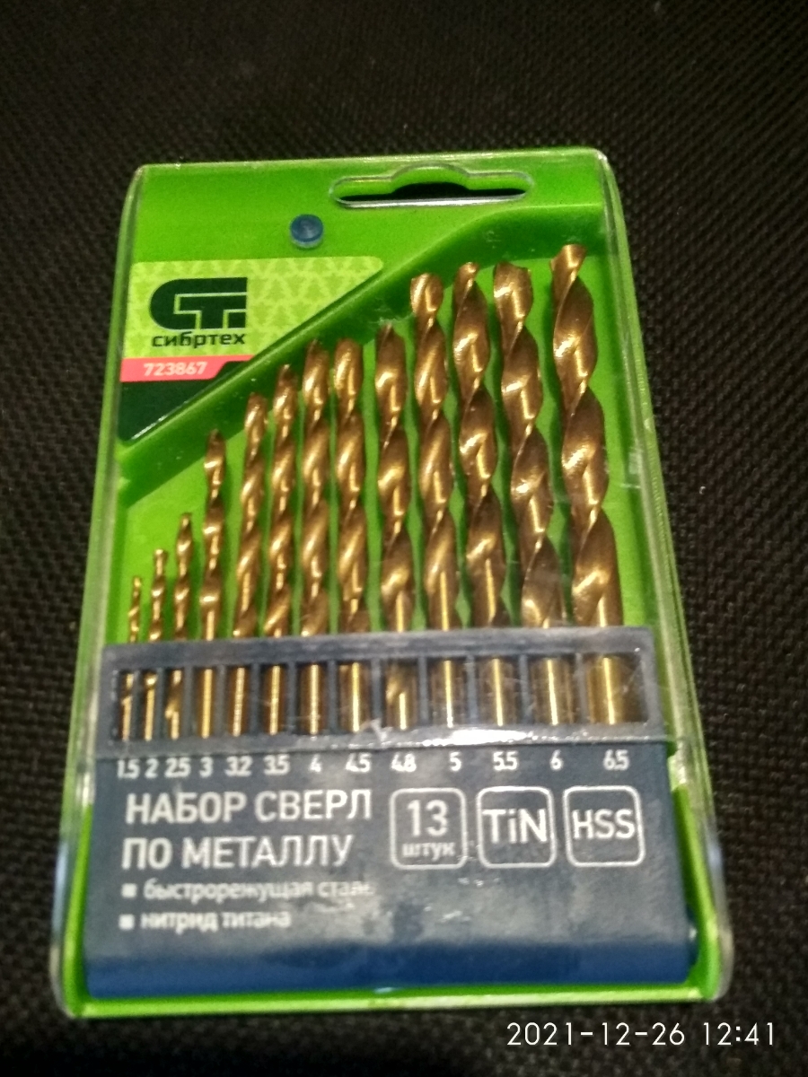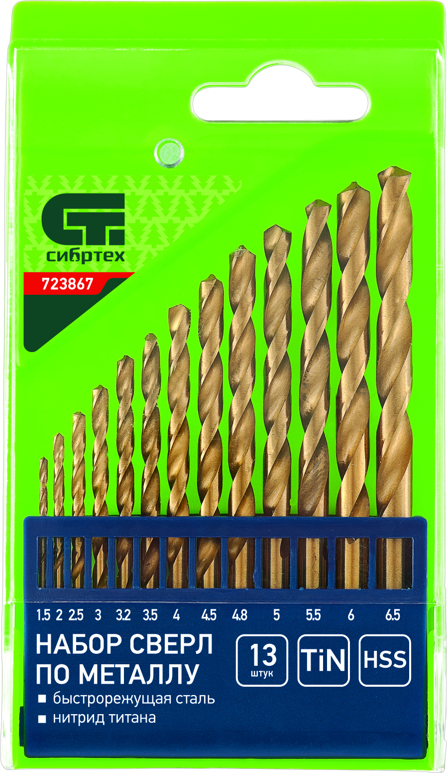 Набор сверл по металлу, СИБРТЕХ 723867, 1,5-6,5мм, НSS, 13 шт
