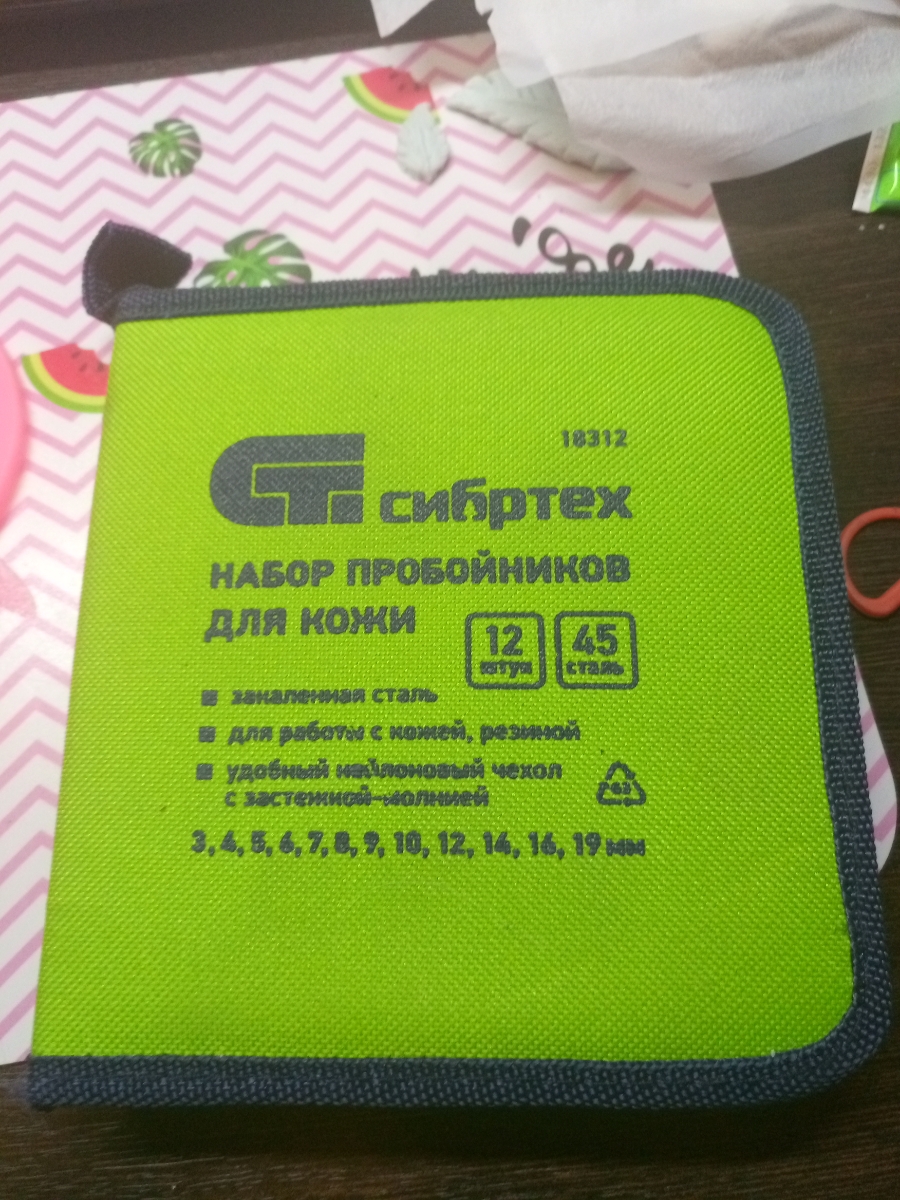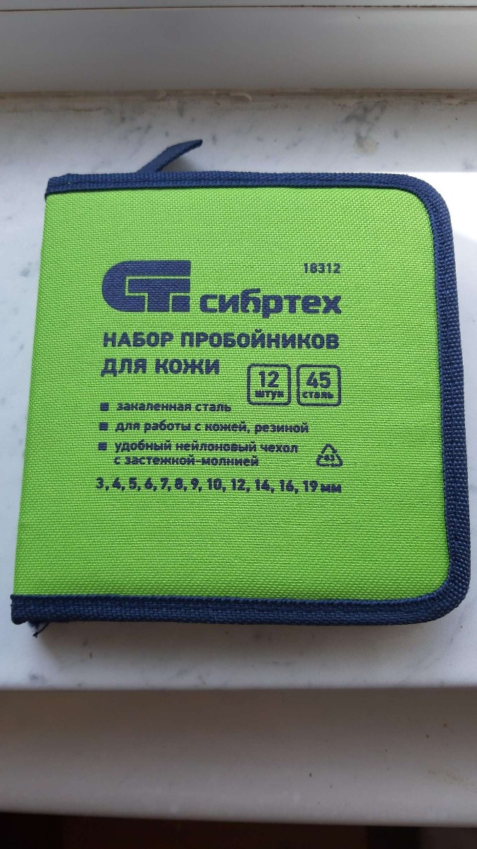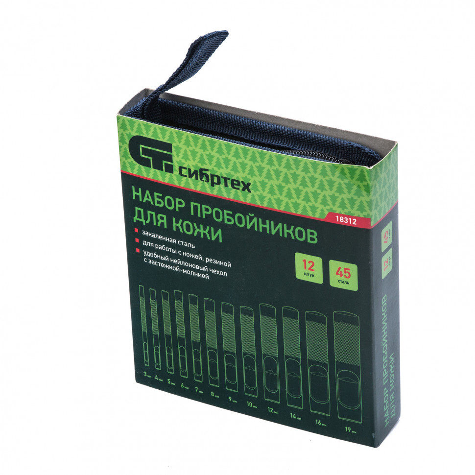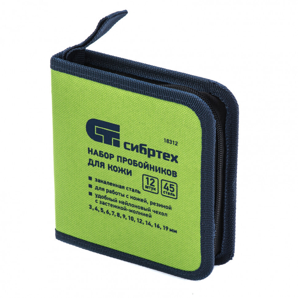 Набор пробойников для кожи 3; 4; 5; 6; 7; 8; 9; 10; 12; 14; 16; 19 мм, 12 шт, чехол СИБРТЕХ 18312