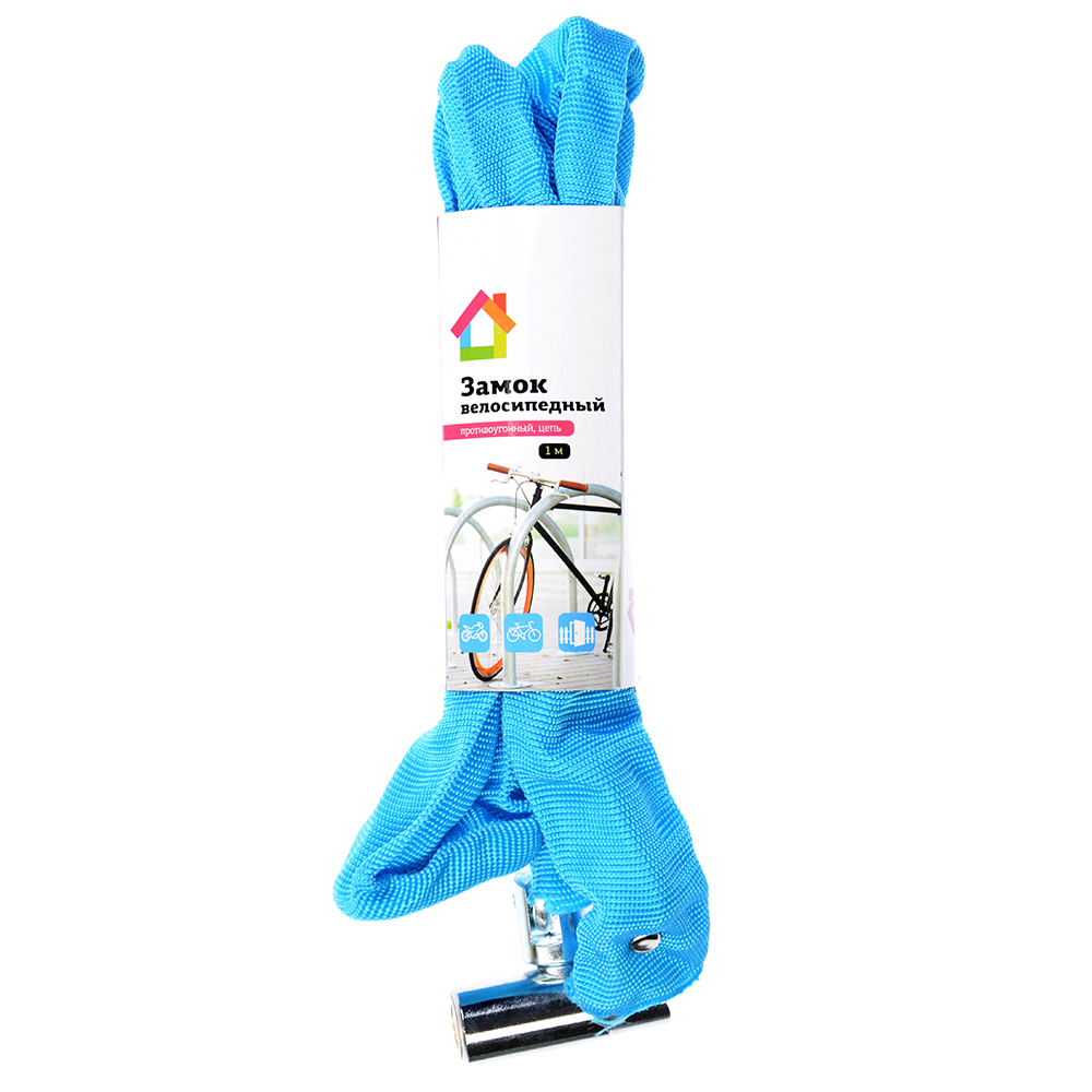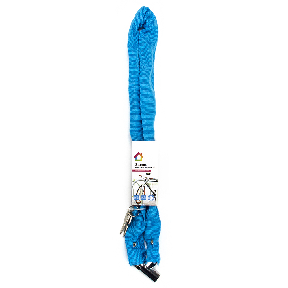 Замок велосипедный тросовый, противоугонный, 12x1200 мм, 2 ключа в комплекте, цвет: голубой