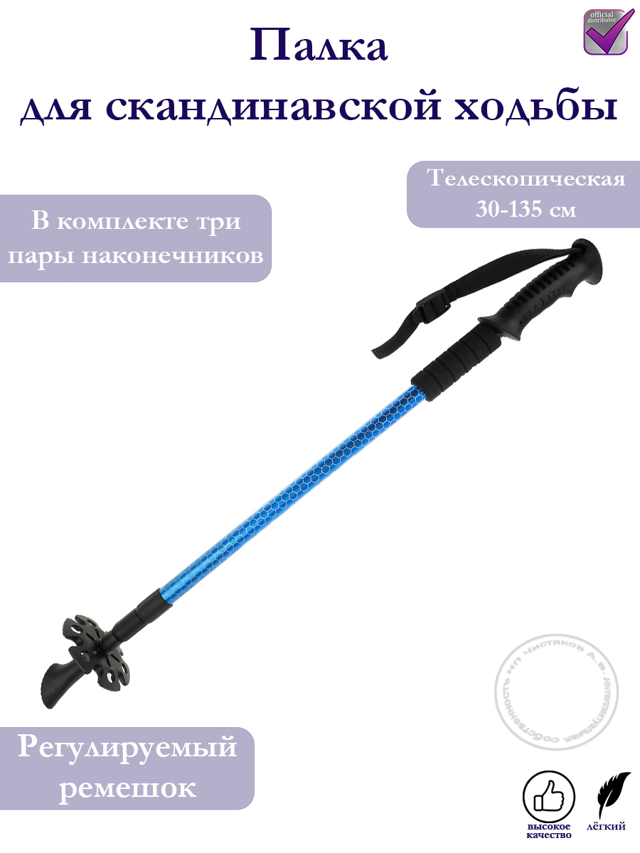 Палка телескопическая для ходьбы, 65-135 см, синий, алюминий, 1шт
