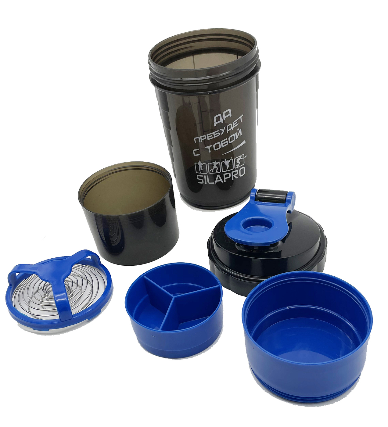 Шейкер спортивный, Спортивная бутылка,shakerSilapro,0.5л.,черный, синий