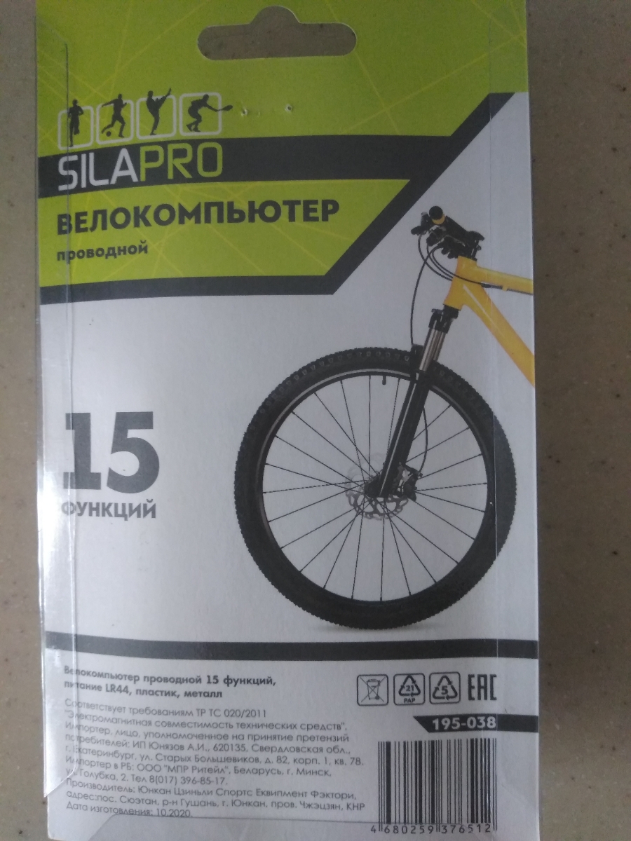 Велокомпьютер проводной 15 функций SILAPRO, питание LR44, пластик, металл