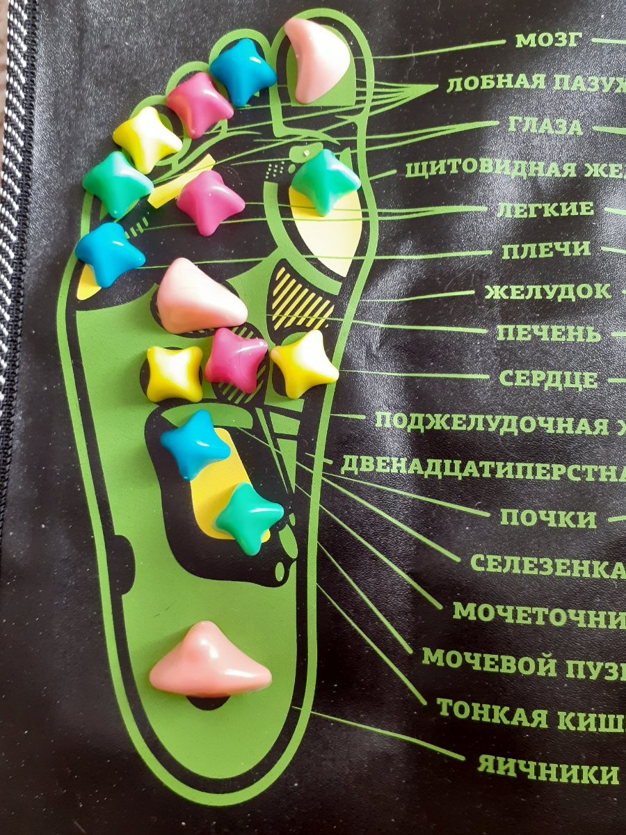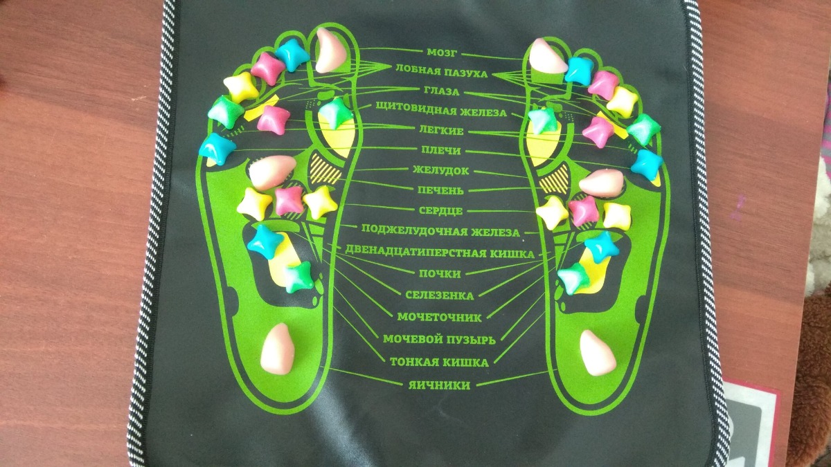 Коврик массажный для ног с указанием акупунктурных точек, 35х35см, пластик, искусств.кожа