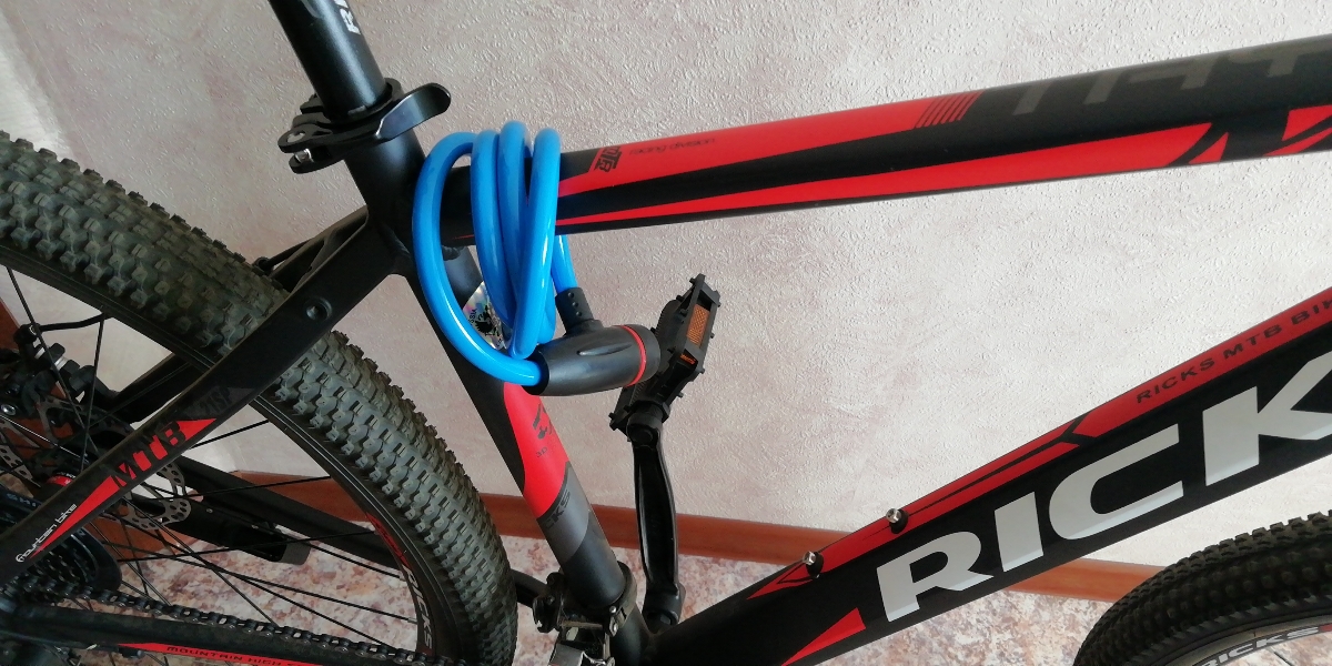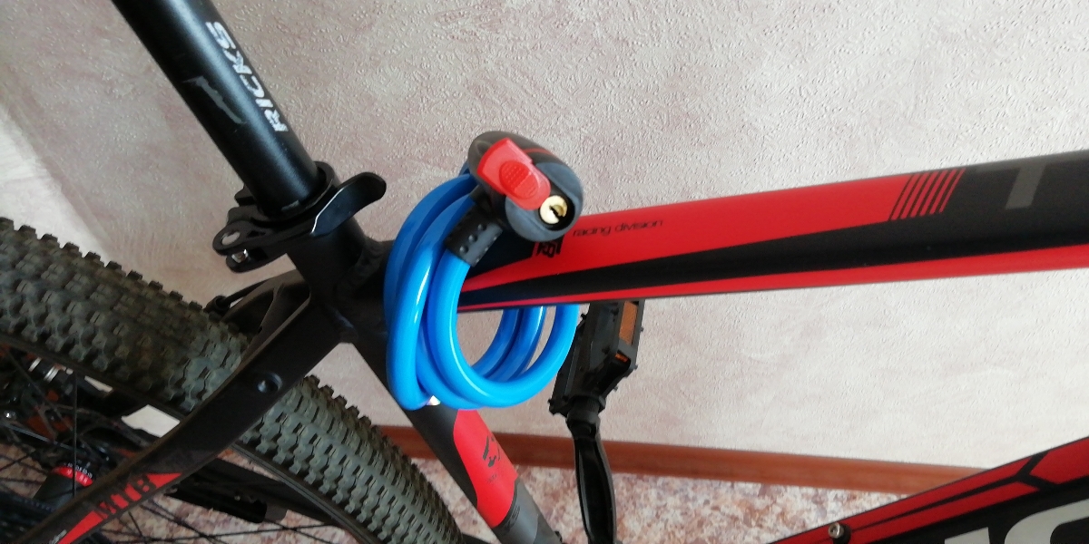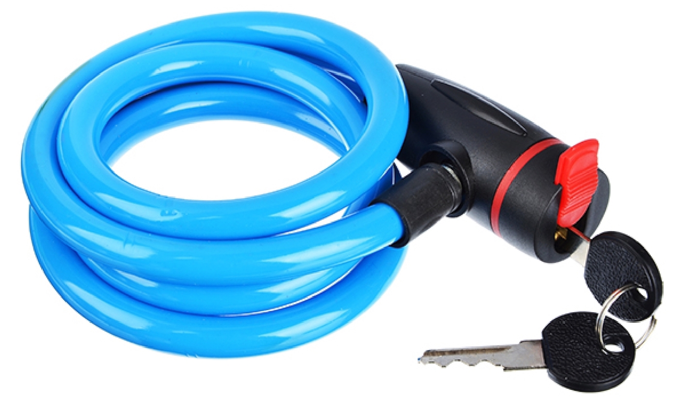 Замок велосипедный тросовый, противоугонный, 12x1200 мм, 2 ключа в комплекте, цвет: голубой