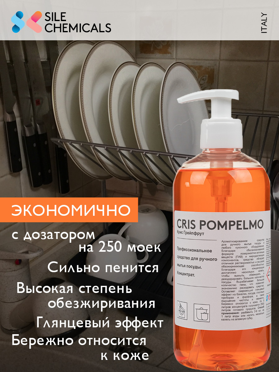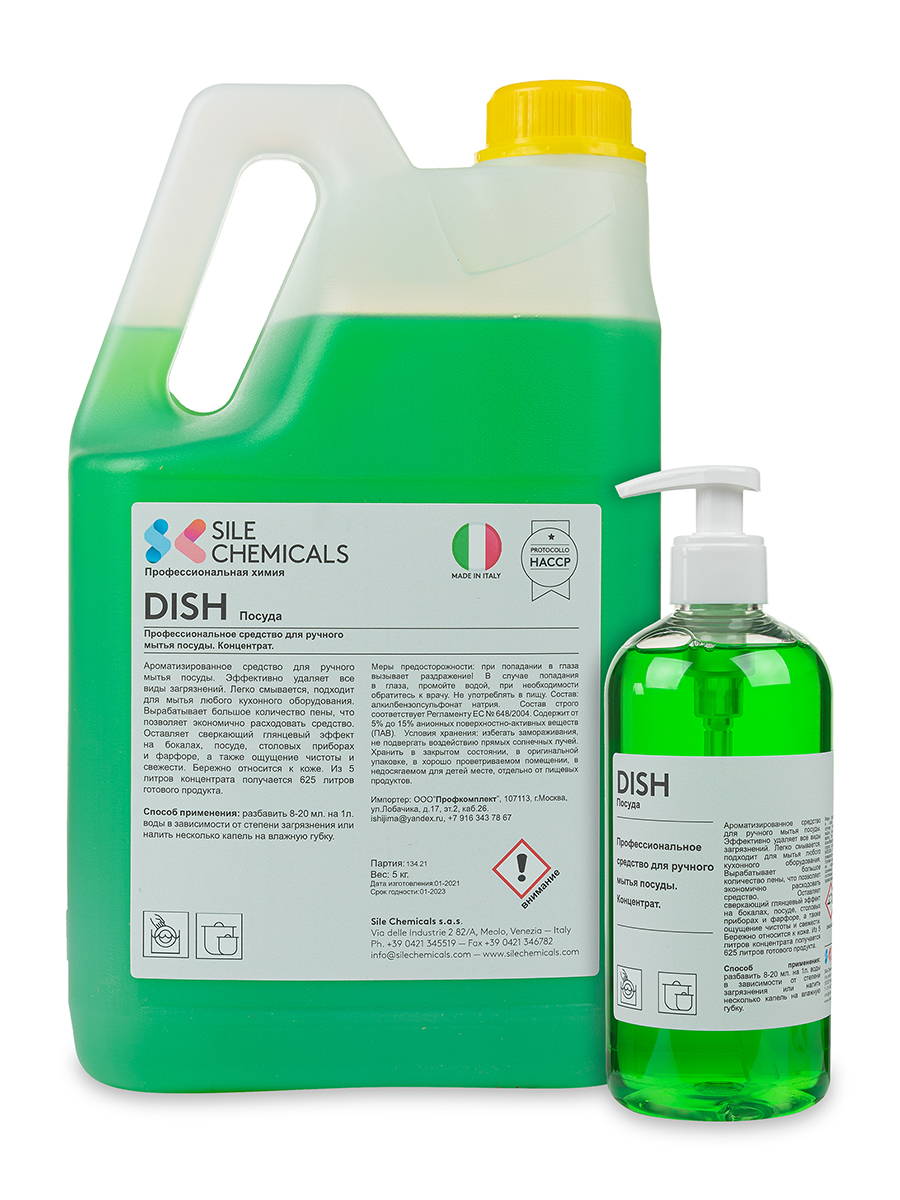 DISH. Профессиональное средство для ручного мытья посуды. Концентрат. 500мл, Италия