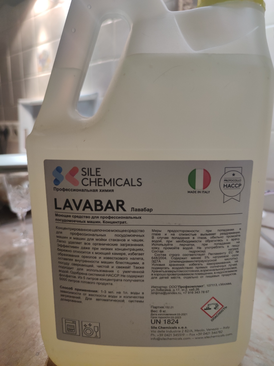 LAVABAR Моющее средство для профессиональных посудомоечных машин. Концентрат. 5л, Италия