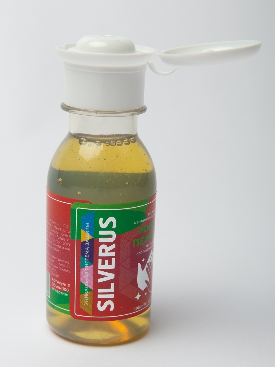 Гель для рук с антимикробным эффектом "ЖИДКИЕ ПЕРЧАТКИ" на основе коллоидного серебра SILVERUS 100 мл.