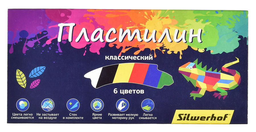 Пластилин Silwerhof Цветландия 6 цветов, 120 гр., стек, картонная коробка