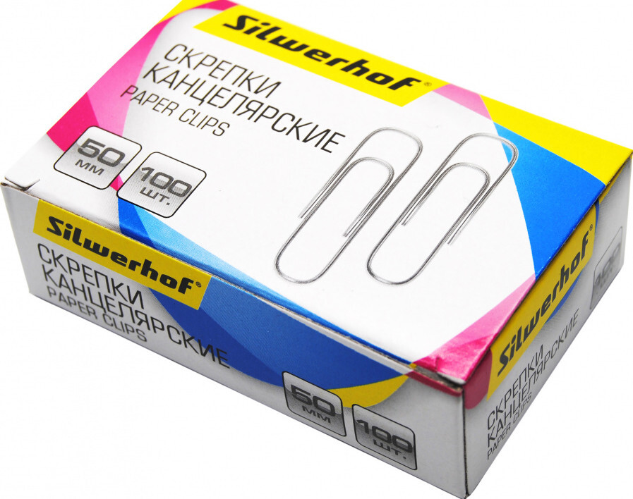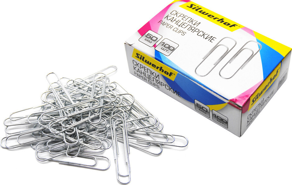 Скрепки Silwerhof 491037 металл оцинкованные 50мм (упак.:100шт) картонная коробка - 50 уп