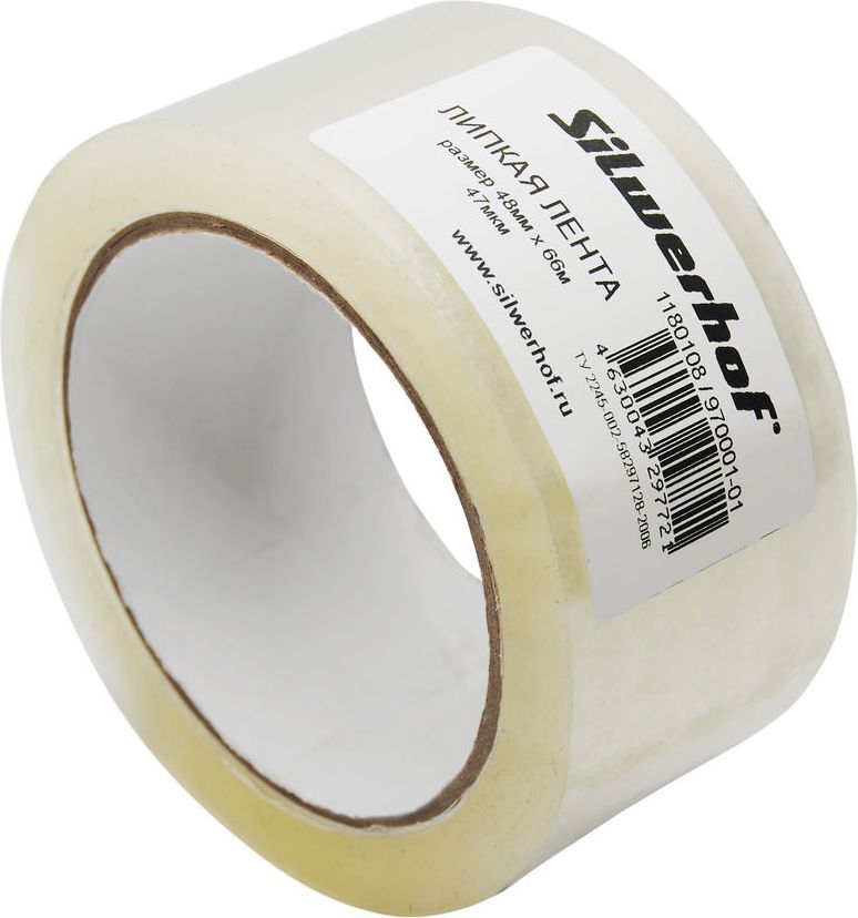 Клейкая лента упаковочная Silwerhof, 970001-01, прозрачная, 47 мкм, полипропилен