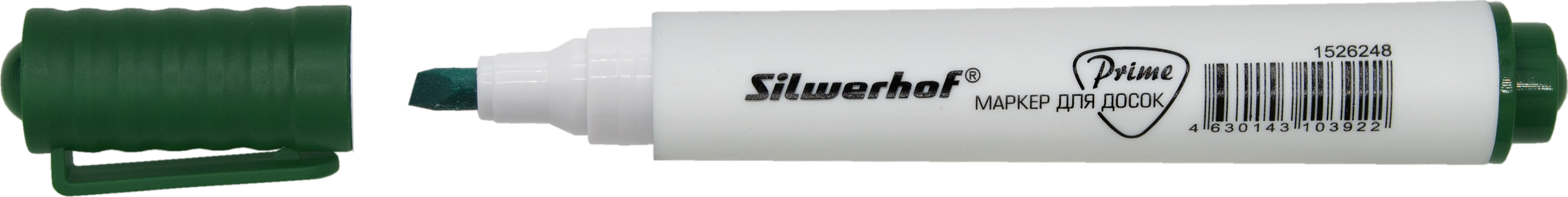Маркер для досок Silwerhof Prime+, скошенный пишущий наконечник 2-5 мм, зеленый коробка