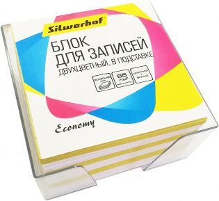 Блок для записей бумажный Silwerhof Эконом, 701035, ассорти в подставке, 90 х 90 х 45 мм, 65 г/м2