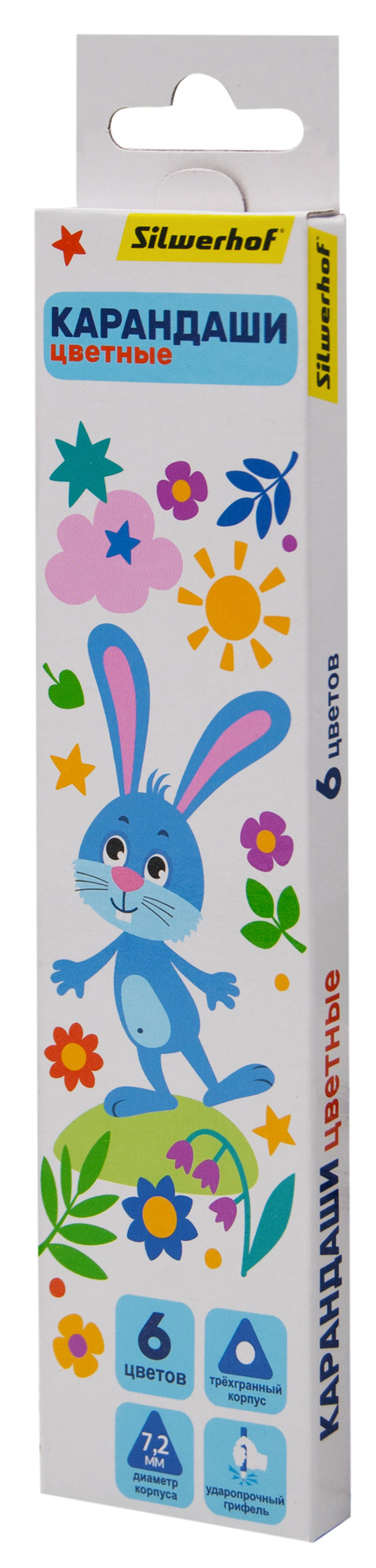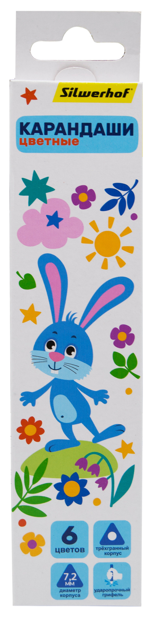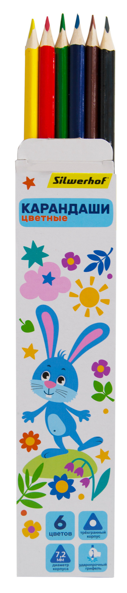 Карандаши цветные Silwerhof Веселые друзья, 6 цветов, трехгранные