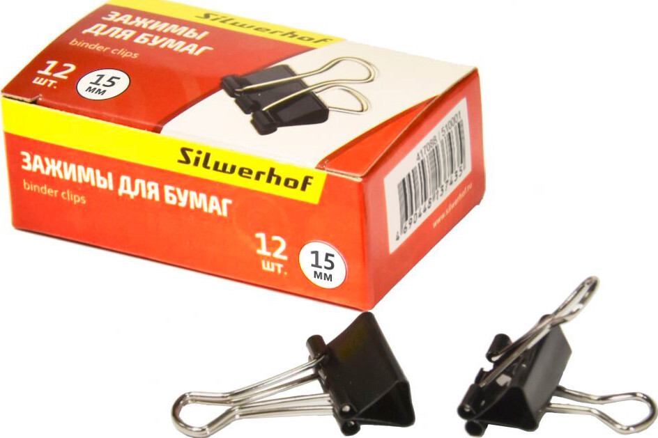 Зажимы Silwerhof 510001 сталь 15мм черный (упак.:12шт) картонная коробка - 12 уп