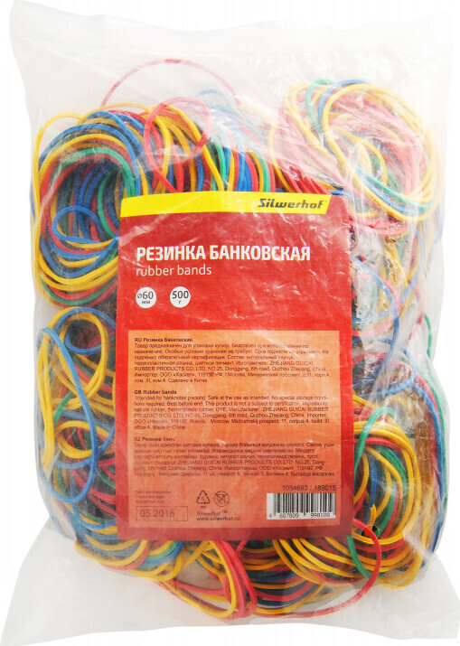 Резинки для купюр Silwerhof 189015 d 60мм 2мм 500гр ассорти - 10 уп