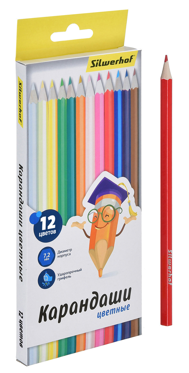 Набор цветных карандашей "Silwerhof" ,12 цветов.