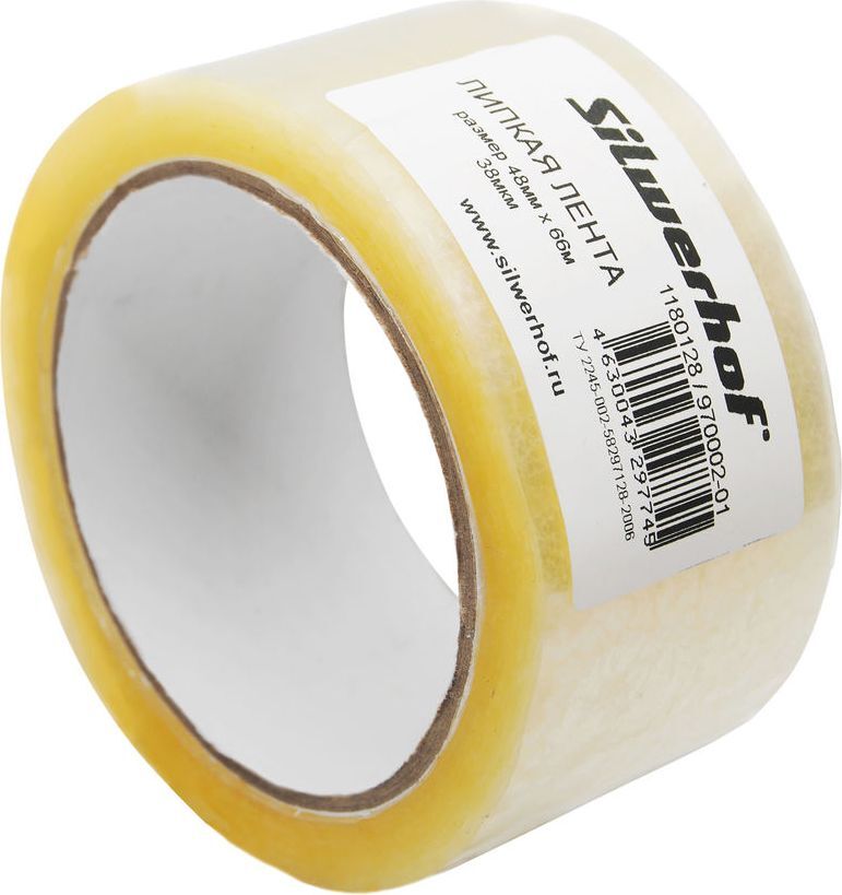 Клейкая лента упаковочная Silwerhof, 970002-01, прозрачная, 38 мкм, полипропилен