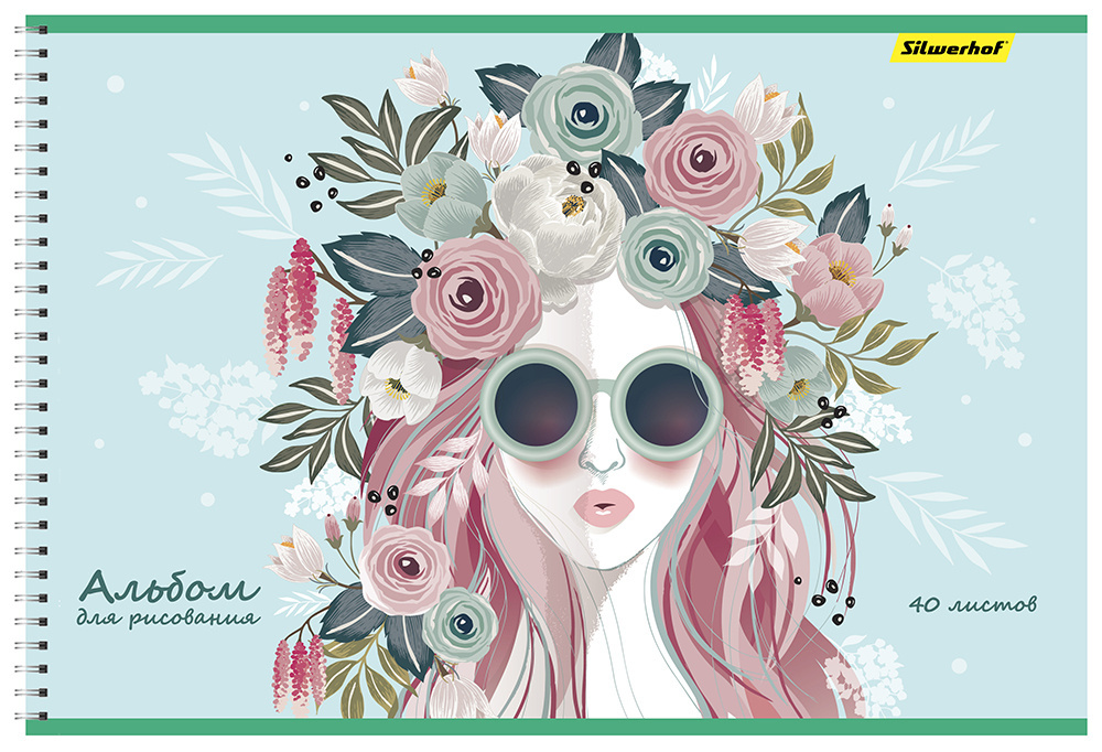 Альбом для рисования Silwerhof 485738 40л. A4 Цветочное искусство 1диз. мел.картон гребень