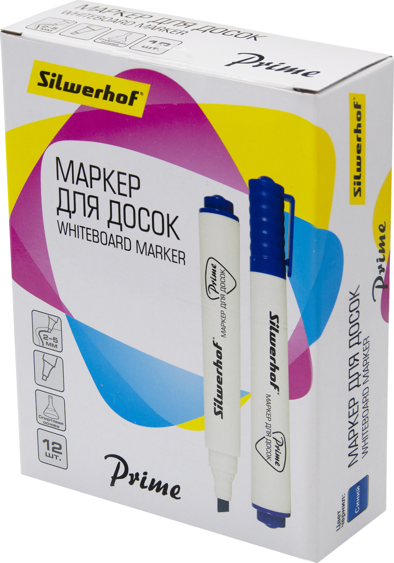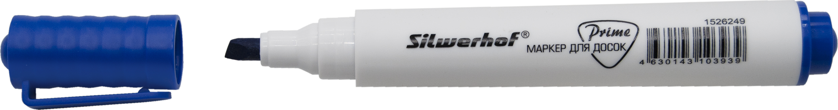 Маркер для досок Silwerhof Prime+, скошенный пишущий наконечник 2-5 мм, синий коробка