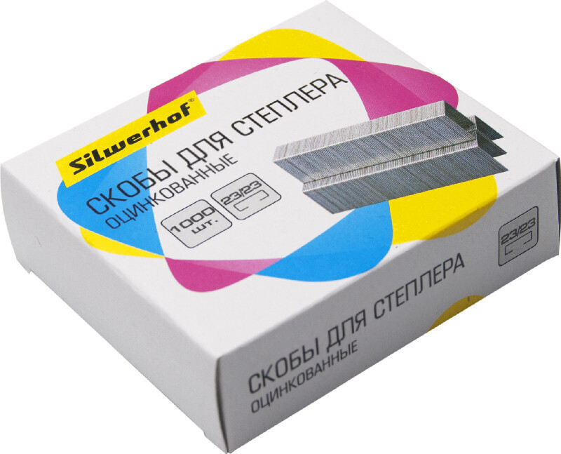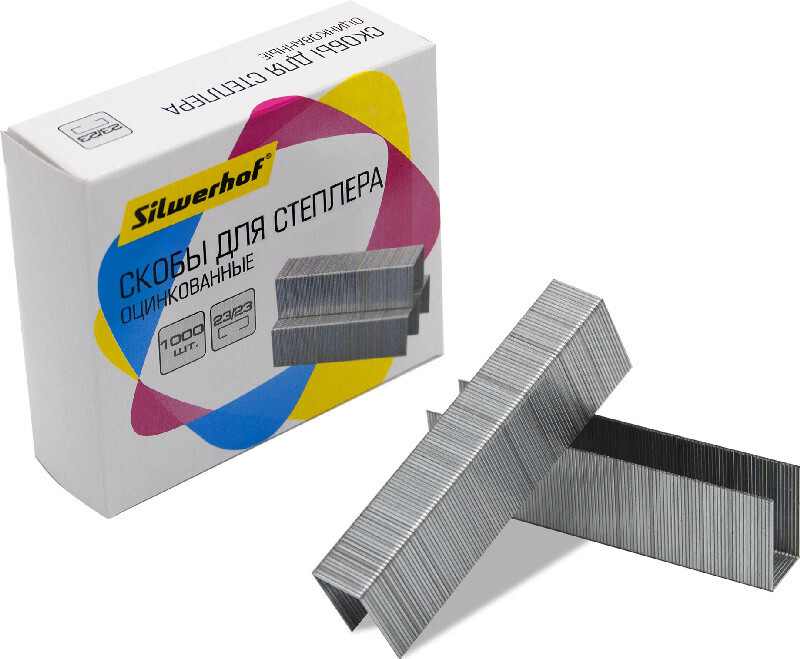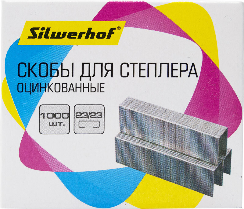 Скобы для степлера 23/23 Silwerhof оцинкованные кор.карт. (упак.:1000шт.) - 10 уп