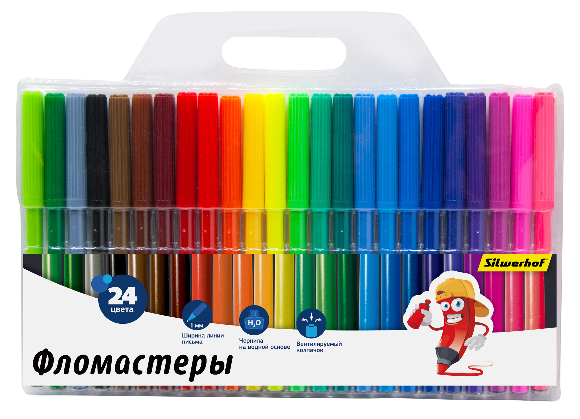 Фломастеры 24 цвета Silwerhof Народная коллекция, круглый корпус, вентилируемый колпачок