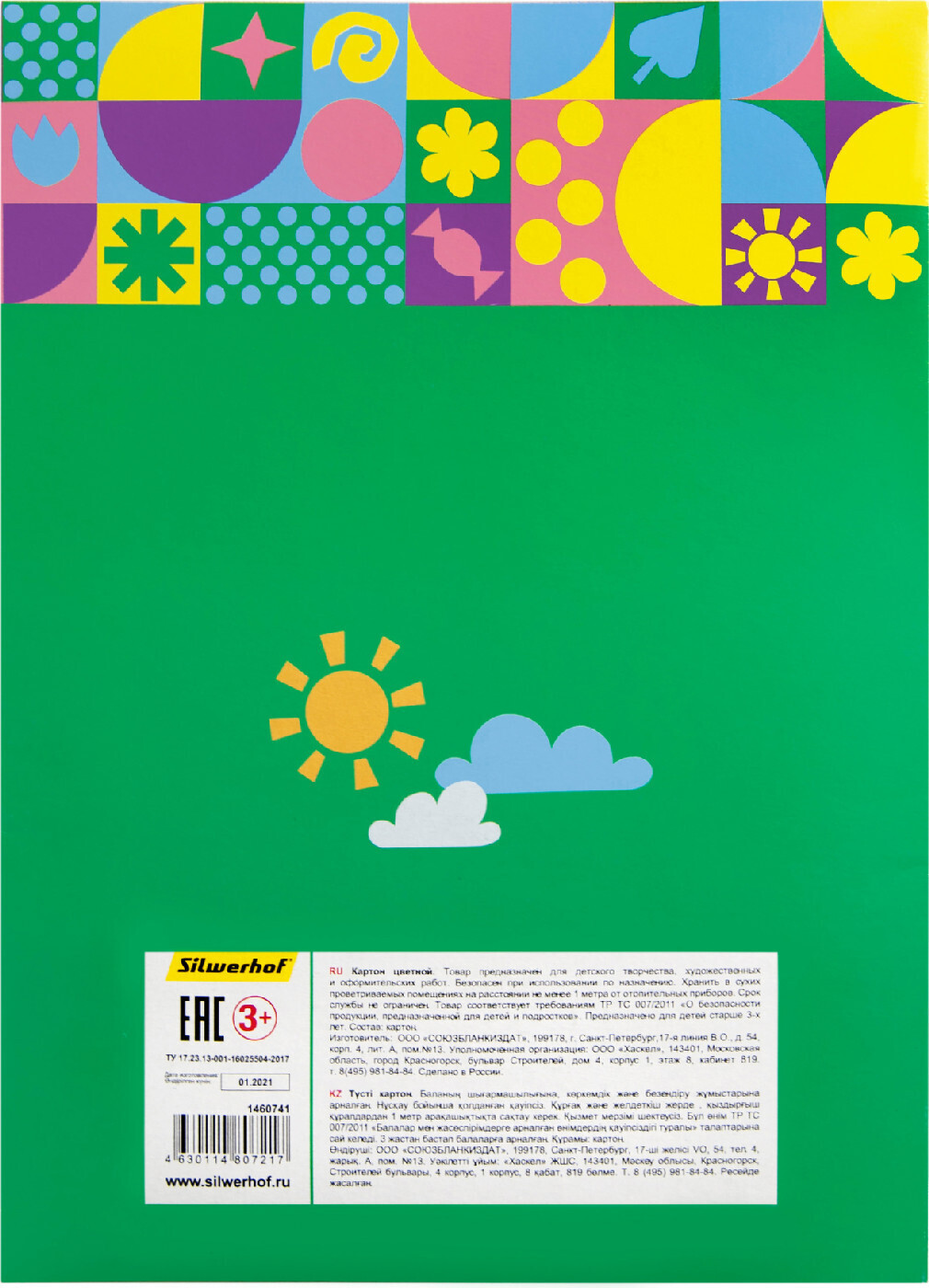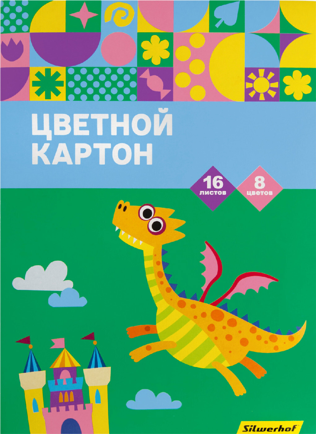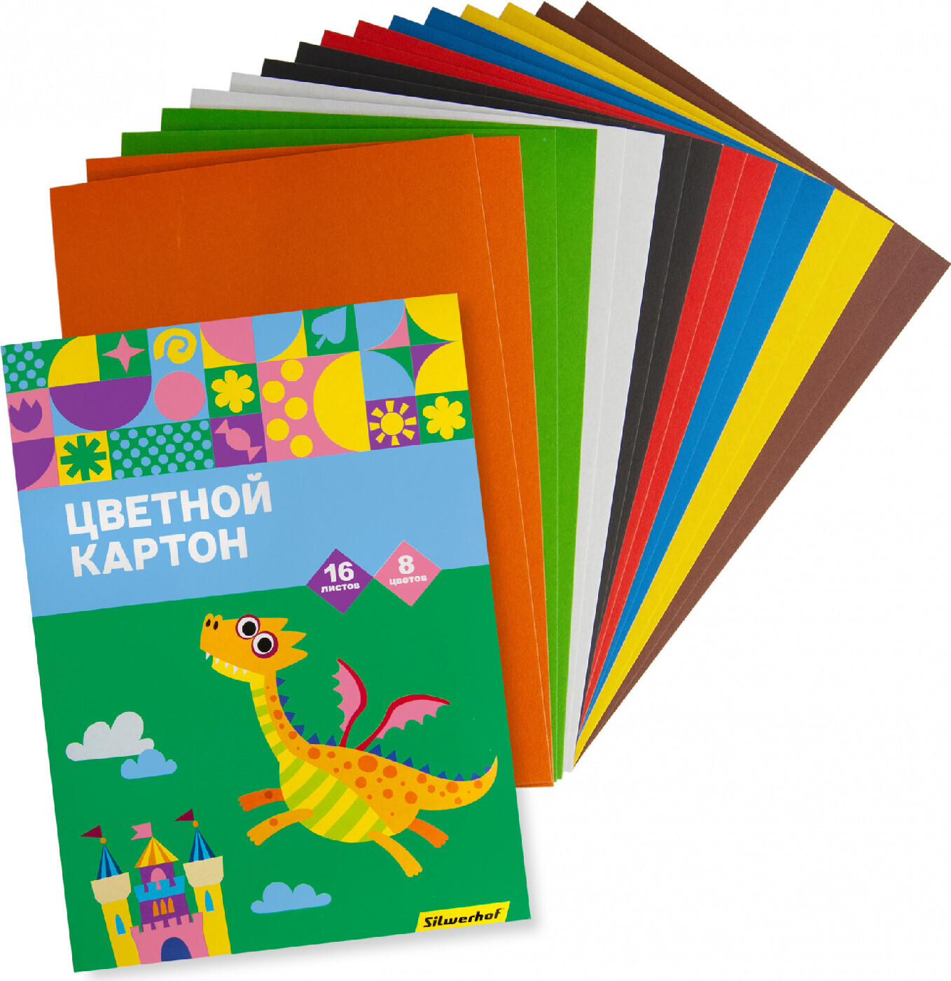 Картон цветной Silwerhof 16л. 8цв. A4 230г/м2 1диз. обл.мел.картон