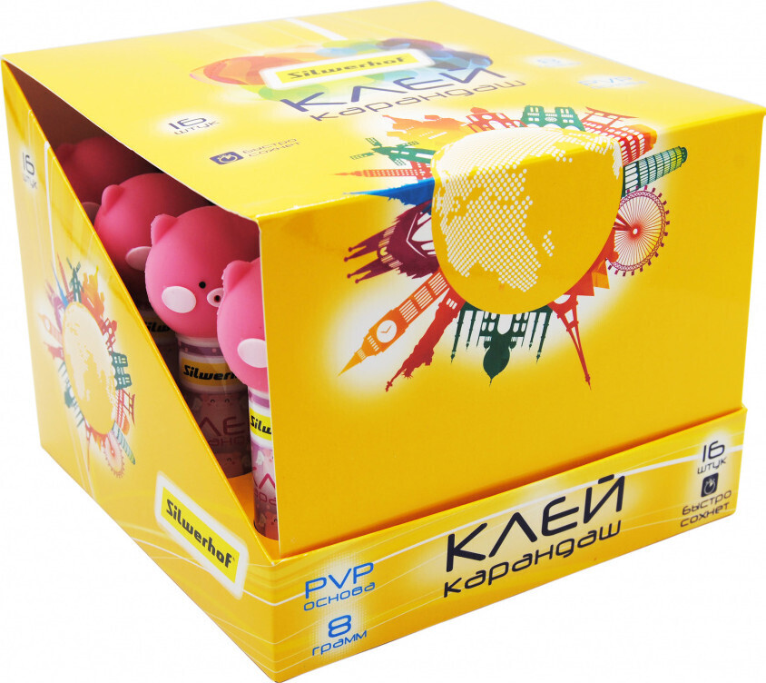 Клей-карандаш Silwerhof Funny 431466-08 8гр ПВП Солнечная коллекция - 16 шт