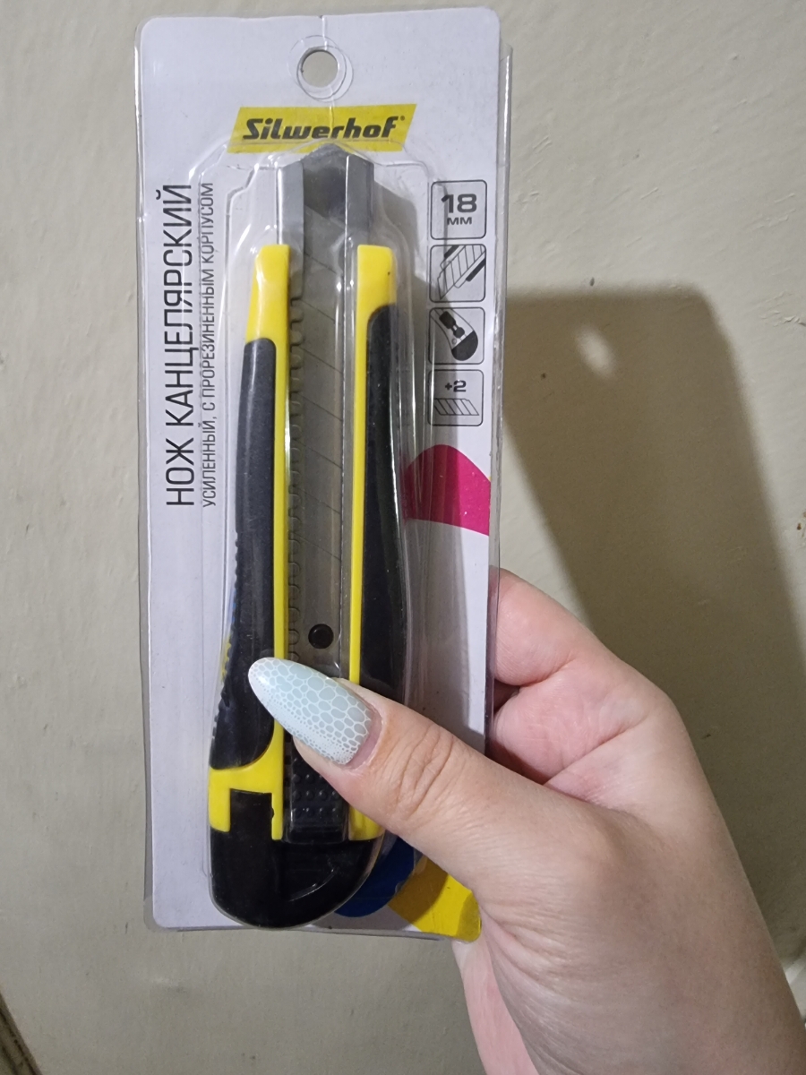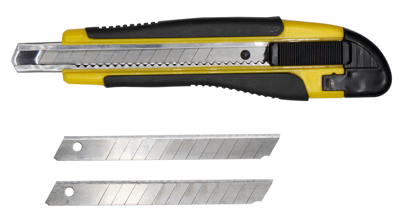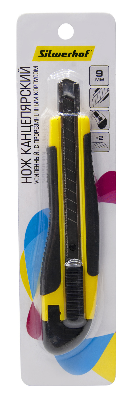 Нож канцелярский Silwerhof ширина лезвия 9мм, фиксатор, 2 сменных лезвия.