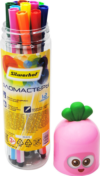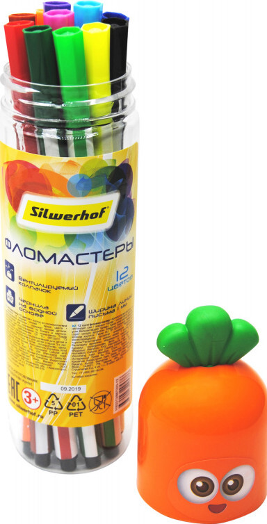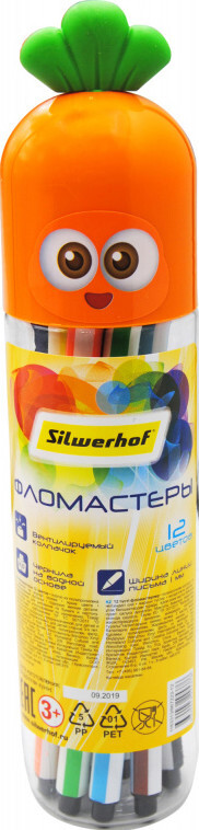 Фломастеры Silwerhof Carrot, 867223-12, Солнечная коллекция, Вентилируемый, смываемые, 12 цветов