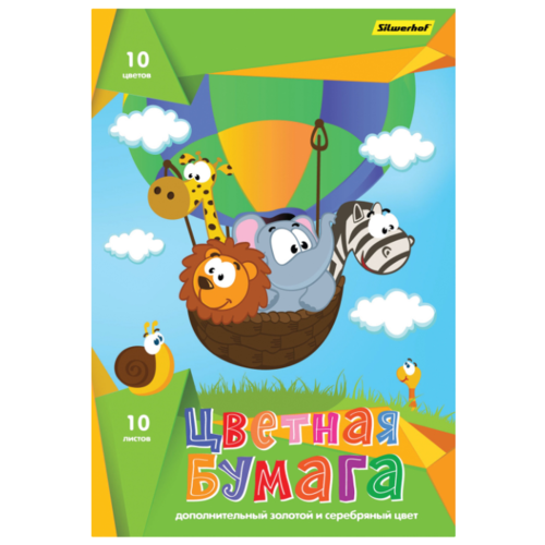 Цветная бумага На воздушном шаре Silwerhof, A4, 10 л., 10 цв.