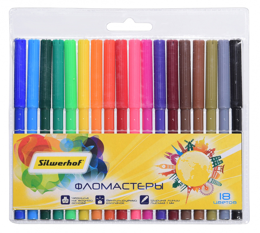 Фломастеры Silwerhof 867222-18 Солнечная коллекция 8мм 129мм круг. Вентилируемый 18цв.