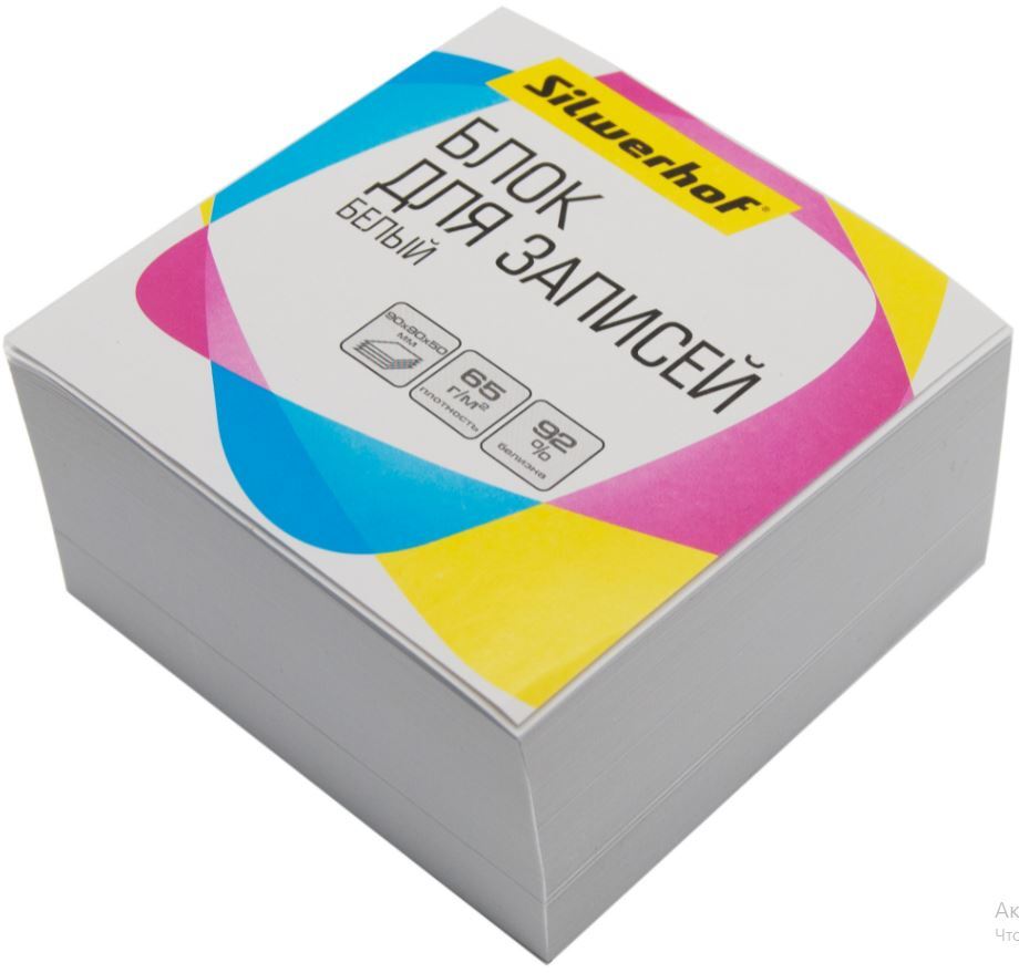 Блок для записей бумажный Silwerhof, 90 х 90 х 90 мм, 65 г/м2, 92% белый