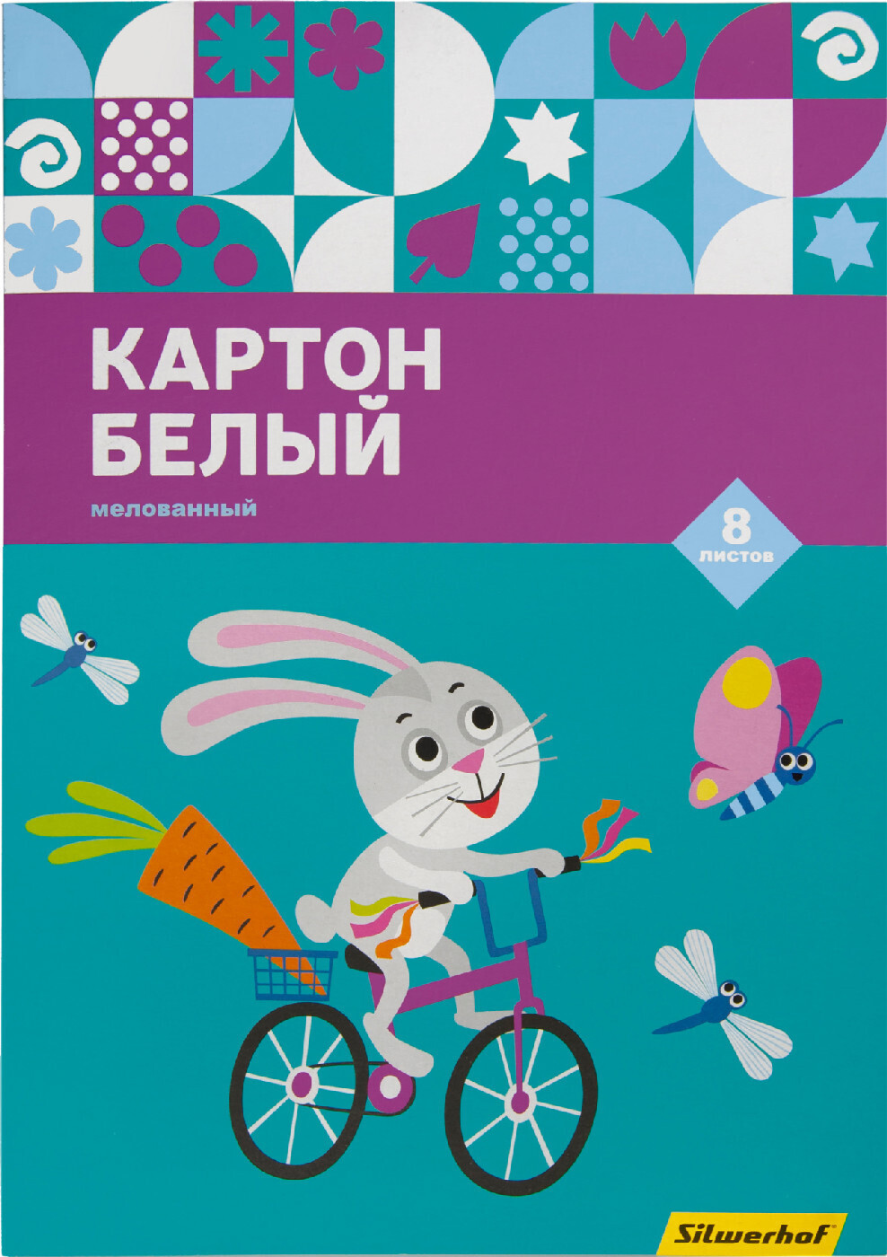 Картон белый Silwerhof мелов. 8л. A4 Зайка 230г/м2 1диз. обл.мел.картон