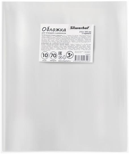 Обложки для тетрадей и дневника Silwerhof, 70 МКМ, 20 штук, ПП, гладкая, прозрачная, 210x345 мм