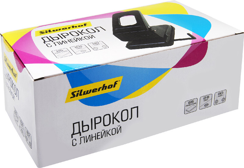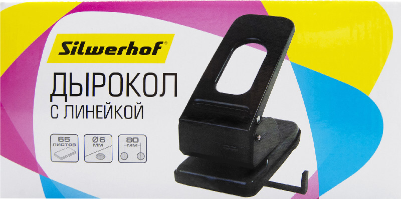 Дырокол Silwerhof 392039-01 макс.:65лист. металл черный отв.:2 с линейкой