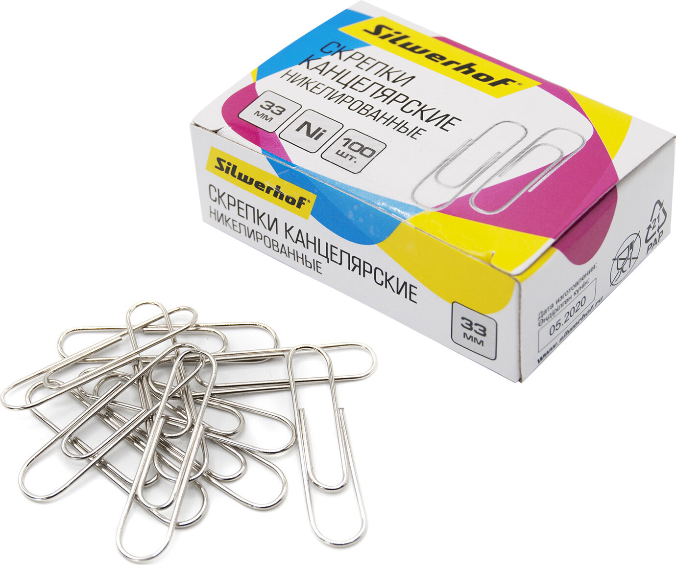 Скрепки Silwerhof никель 33мм (упак.:100шт) картонная коробка - 10 уп
