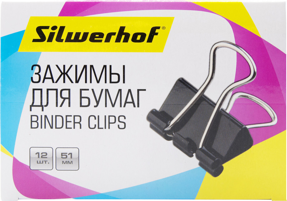 Зажимы Silwerhof 510018 сталь 51мм черный (упак.:12шт) картонная коробка - 12 уп