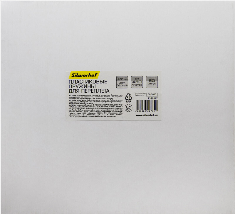 Пружины для переплета пластиковые Silwerhof 51мм 411-450лист A4 белый (50шт) (1373590)