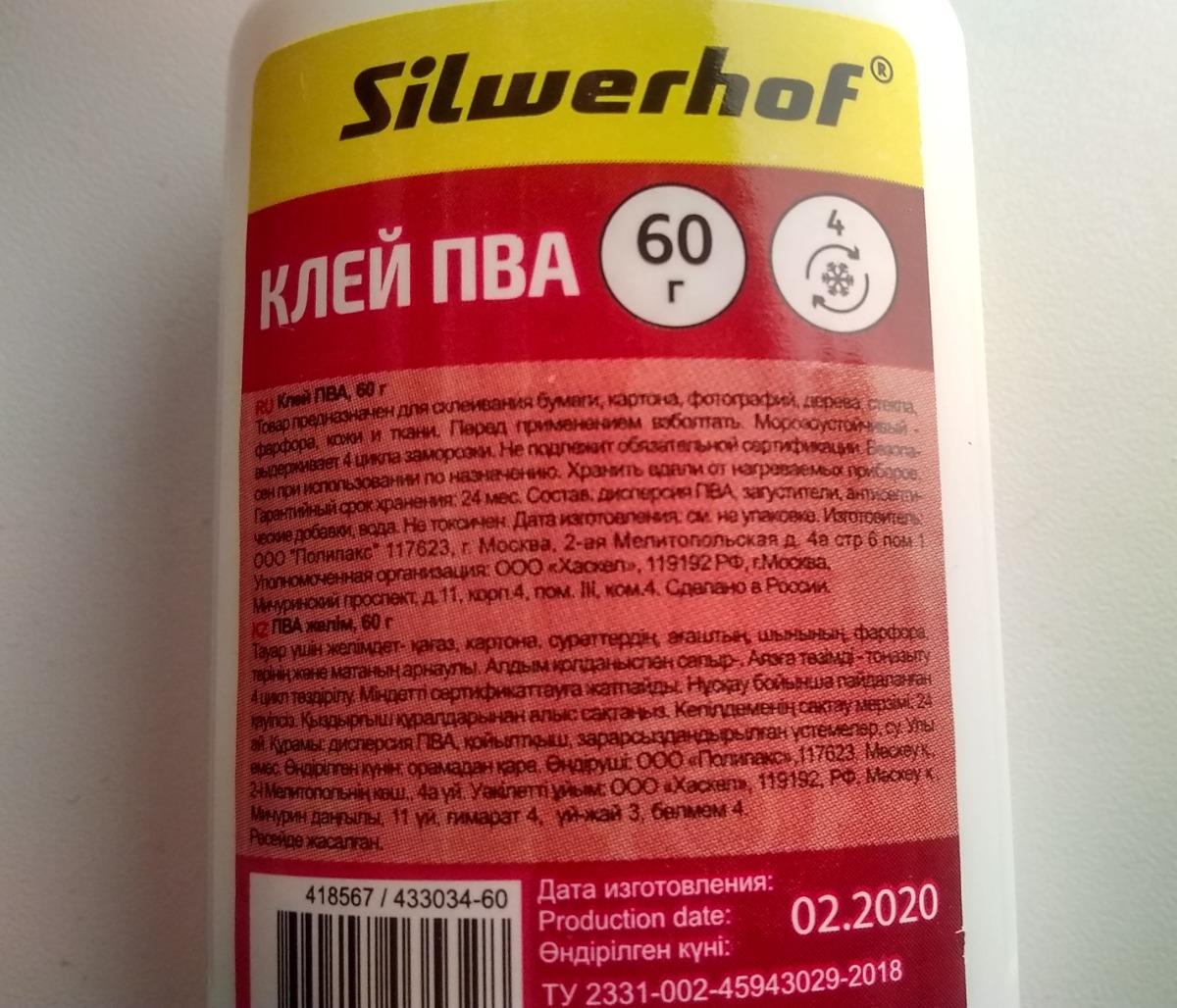 Клей ПВА Silwerhof 433034-60 60гр морозоустойчивый