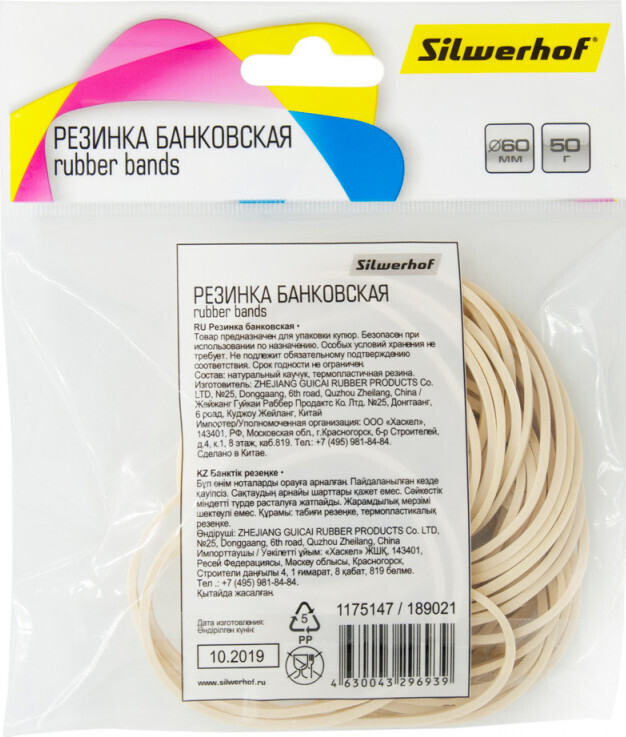 Резинки для купюр Silwerhof 189021 d 60мм 2мм 50гр натуральный - 20 уп