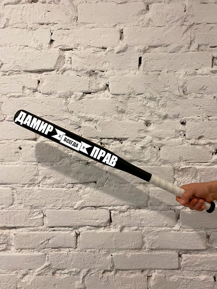 Бейсбольная бита "Айдар всегда прав" черная с белой рукояткой