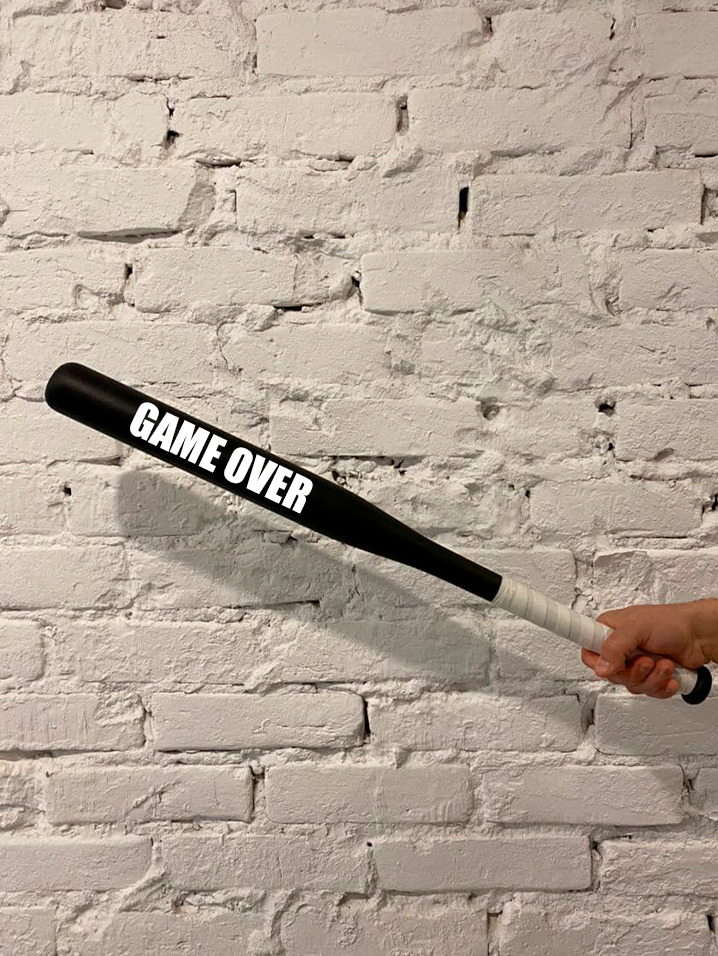 Бейсбольная бита "Game over" черная с белой рукояткой