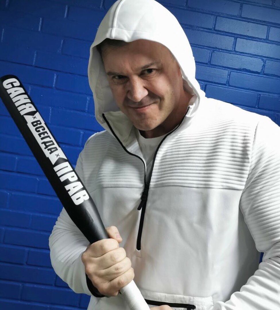 Бита бейсбольная "Саня всегда прав" черная с белой рукояткой