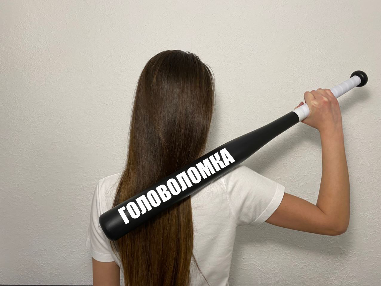 Бейсбольная бита "Головоломка"черная с белой рукояткой