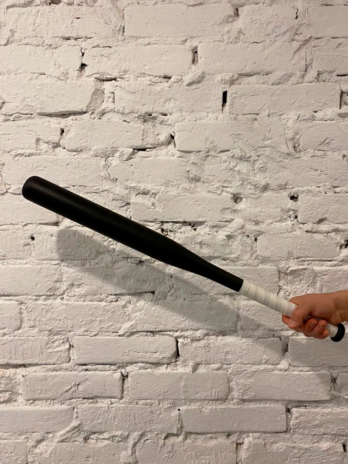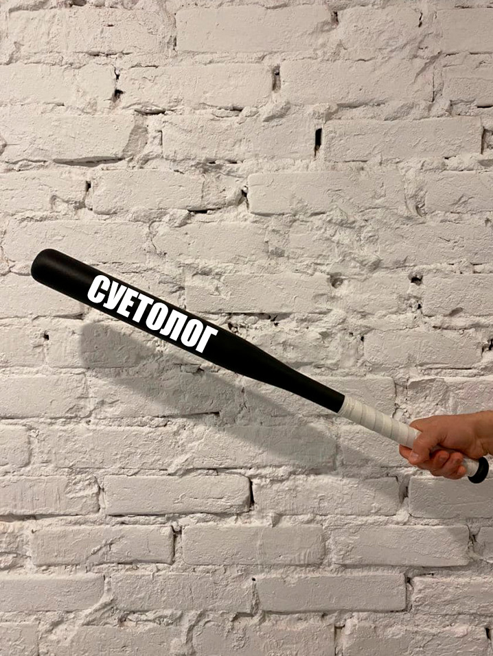 Бейсбольная бита "Суетолог" черная с белой рукояткой