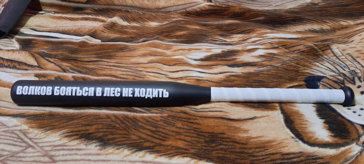 Бейсбольная бита "Волков бояться в лес не ходить"черная с белой рукояткой