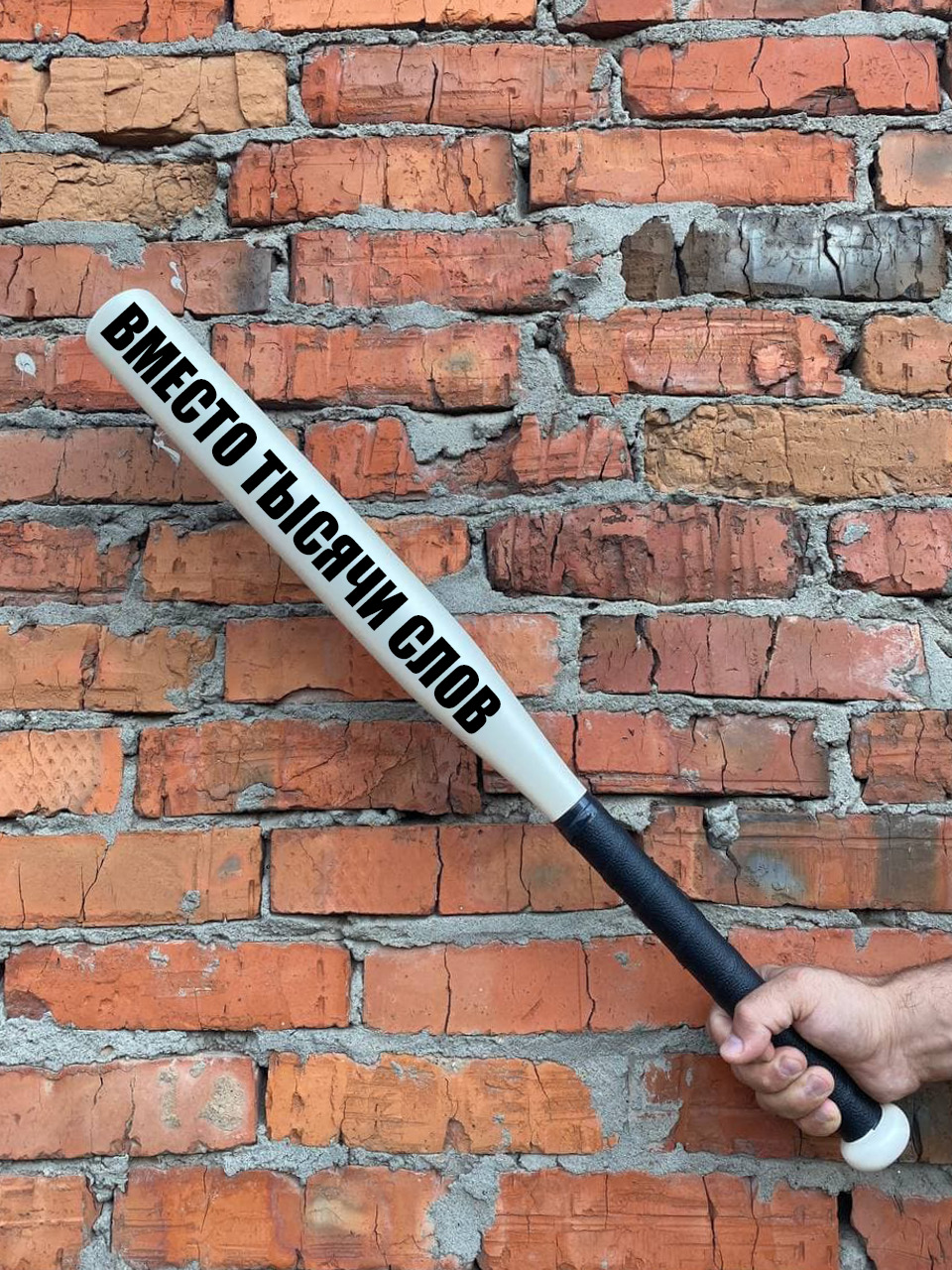 Бейсбольная бита "Вместо тысячи слов" белая с черной рукояткой
