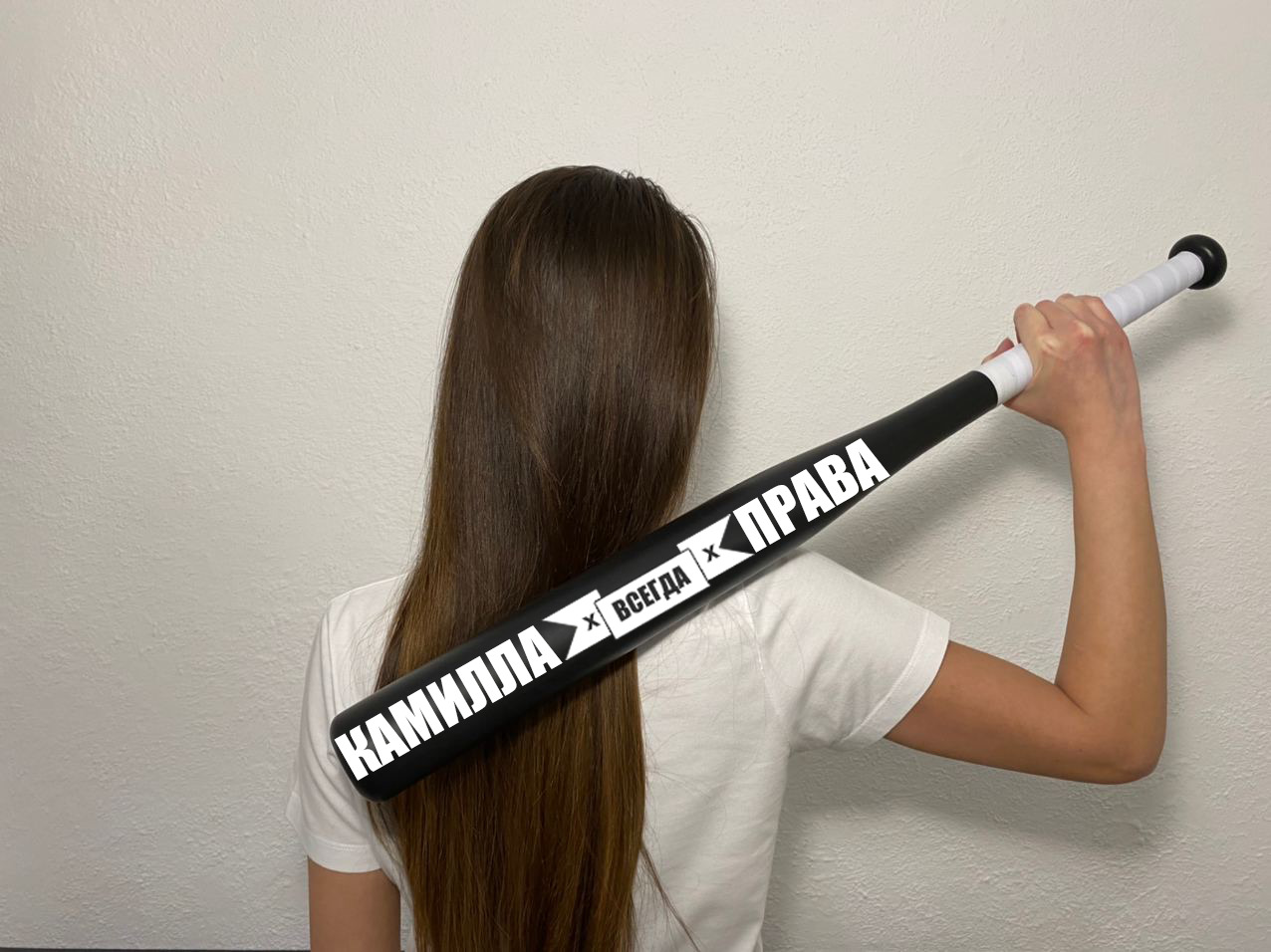 Бейсбольная бита"Камилла всегда права"черная с белой рукояткой