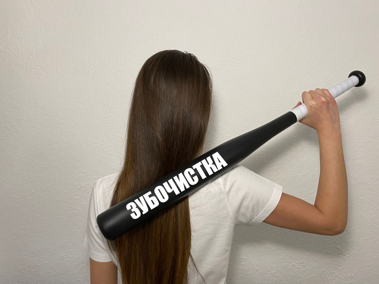 Бейсбольная бита"Альбина всегда права"черная с белой рукояткой