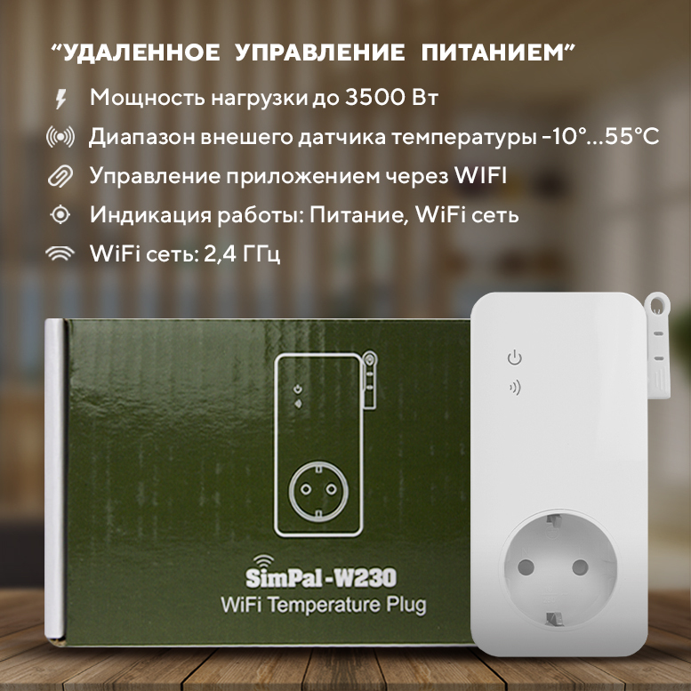 WIFI РОЗЕТКА С ДАТЧИКОМ ТЕМПЕРАТУРЫ (умная дистанционная розетка) Simpal-W230